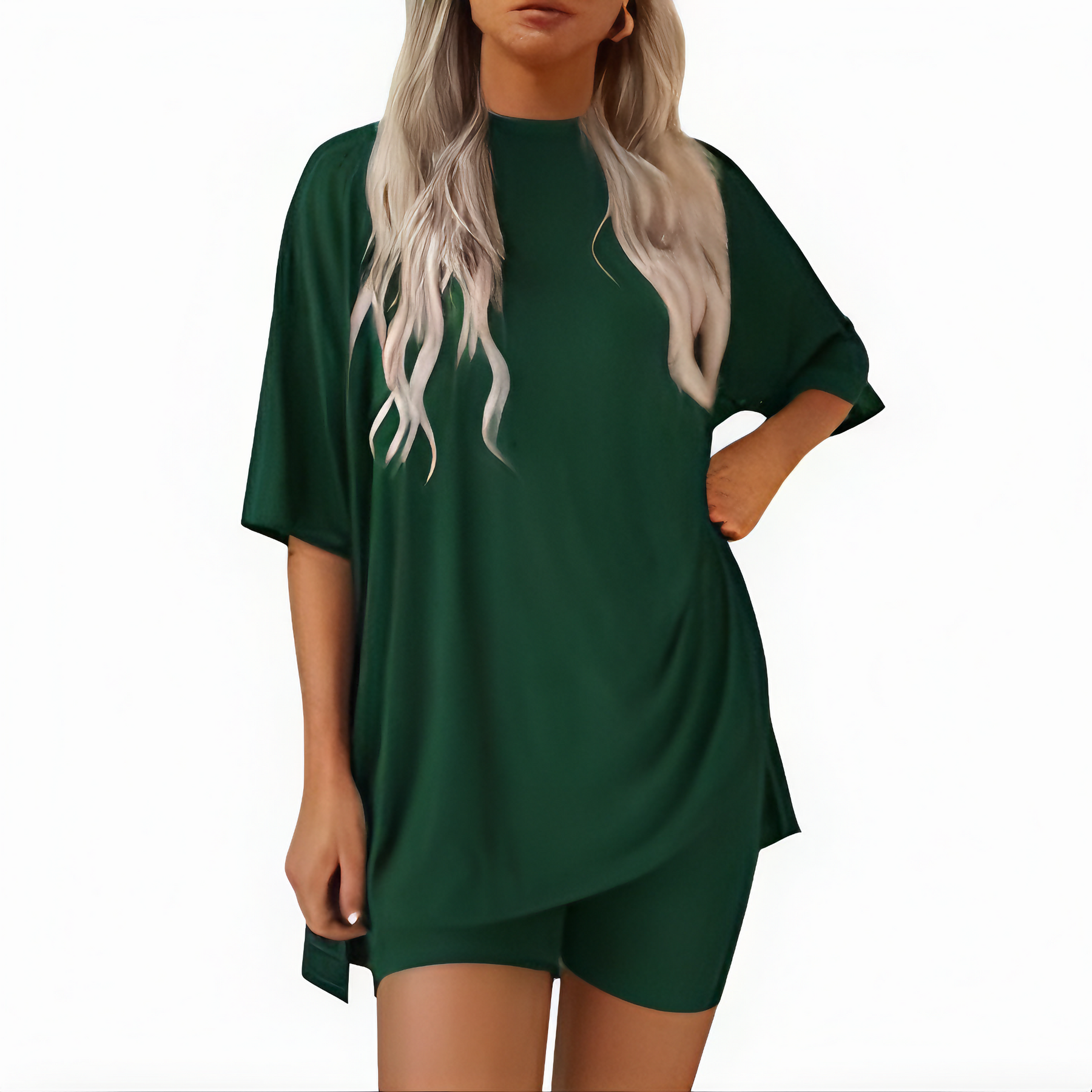 MIRELA Elegancki Letni Zestaw składa się z przewiewnej bluzki i dopasowanych spodenek, zaprojektowanych z myślą o bezproblemowym letnim stylu. Ten dwuczęściowy zestaw łączy komfort z elegancją, co czyni go idealnym strojem na słoneczne dni, wakacje i relaksujące spotkania.